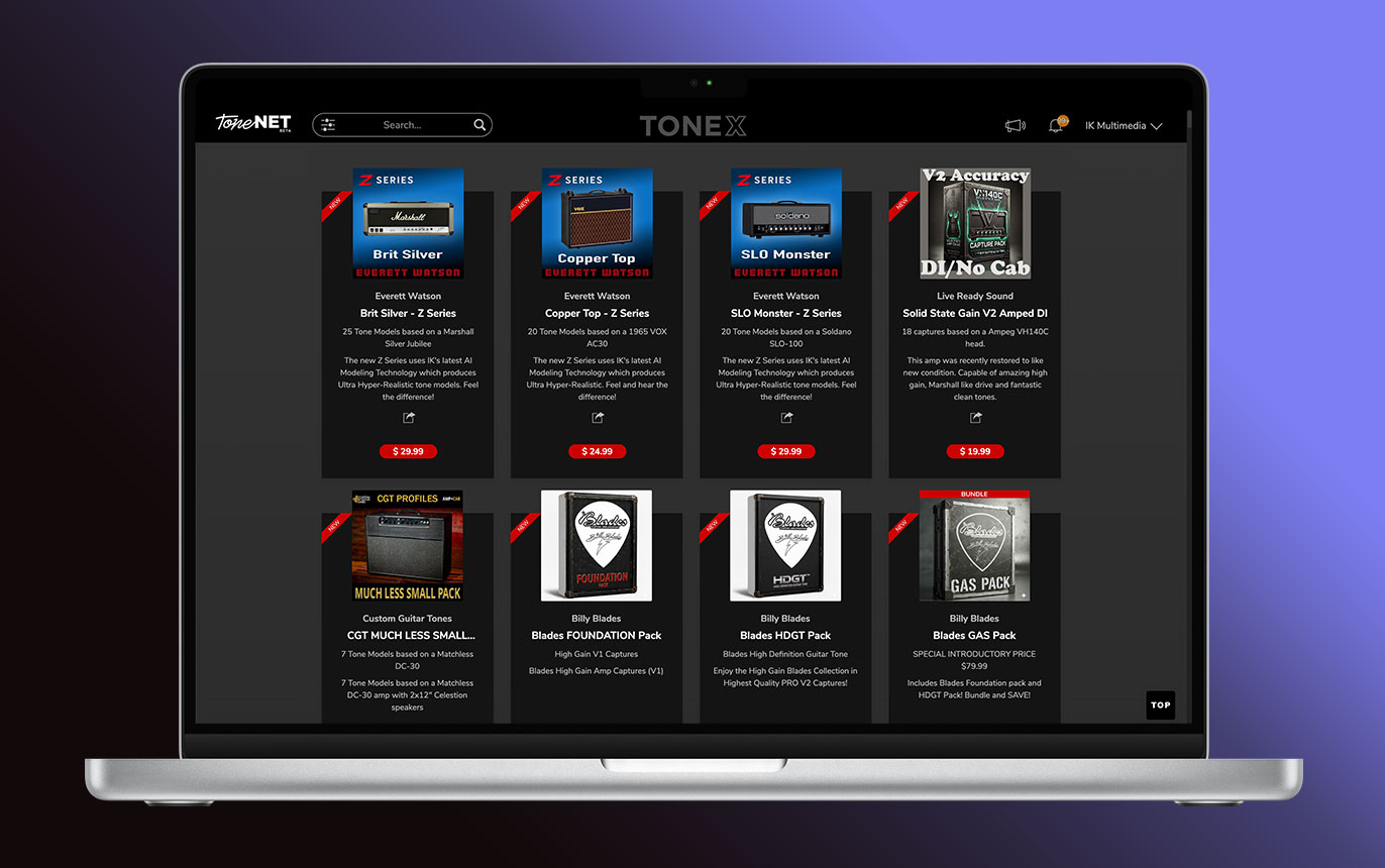 IK releases 8 new TONEX Tone Partner Collections and bundles, now available on ToneNET for demo and purchase, featuring the sonic advances of the new TONEX Modeler. That's over 700 new Premium Tone Models to explore in a wide range of styles.
