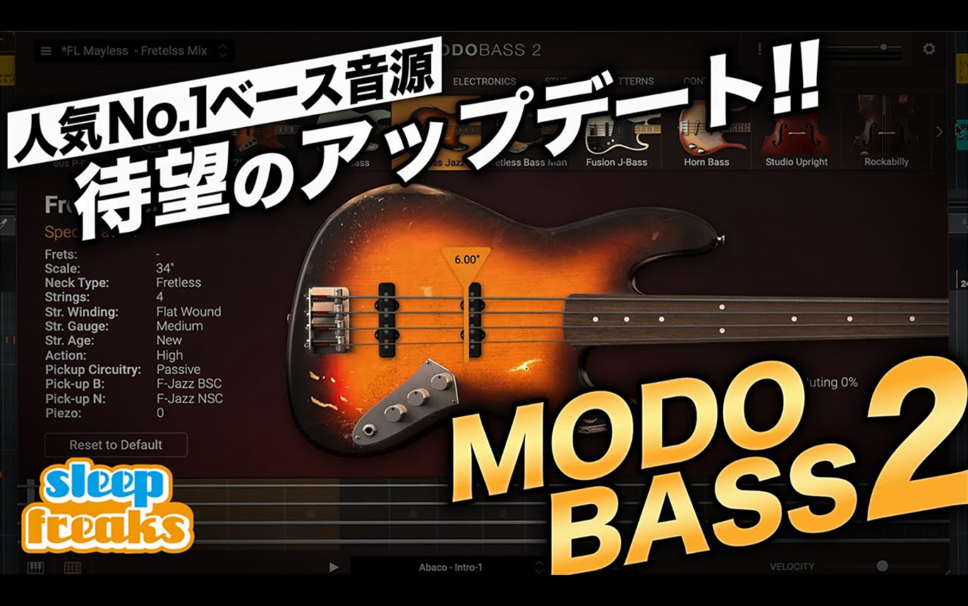 音楽制作に関する記事、レッスンでは定評のあるSleepfreaksが、「大人気ベース音源 MODO BASS 2 新機能まとめ」記事と、「MODO BASS 2 新機能のまとめ動画」を公開。