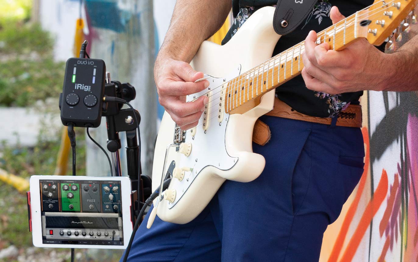 iRig Pro Duo I/O には、iPhone、iPad接続用のLightning、最新のMac/PC、iPad Pro接続用のUSB-CおよびUSB-Aと、3本の接続ケーブルが同梱されています。MIDI入出力用には、スタンダードなMIDI端子のケーブルが2本同梱されています。Mac/PCのUSBバスパワー、9V ACアダプタ(別売)だけでなく、単3電池2本(同梱)でも駆動できるので、外出先でも電源に困ることはないでしょう。75mm x 127mmと手のひらに収まるくらいポータブルで、移動中の損傷の原因となる突起を廃したデザインが採用されているので、気軽に持ち運んで、ギターと歌、ステレオ・ペアのマイクなど、2チャンネルの同時録音が楽しめます。