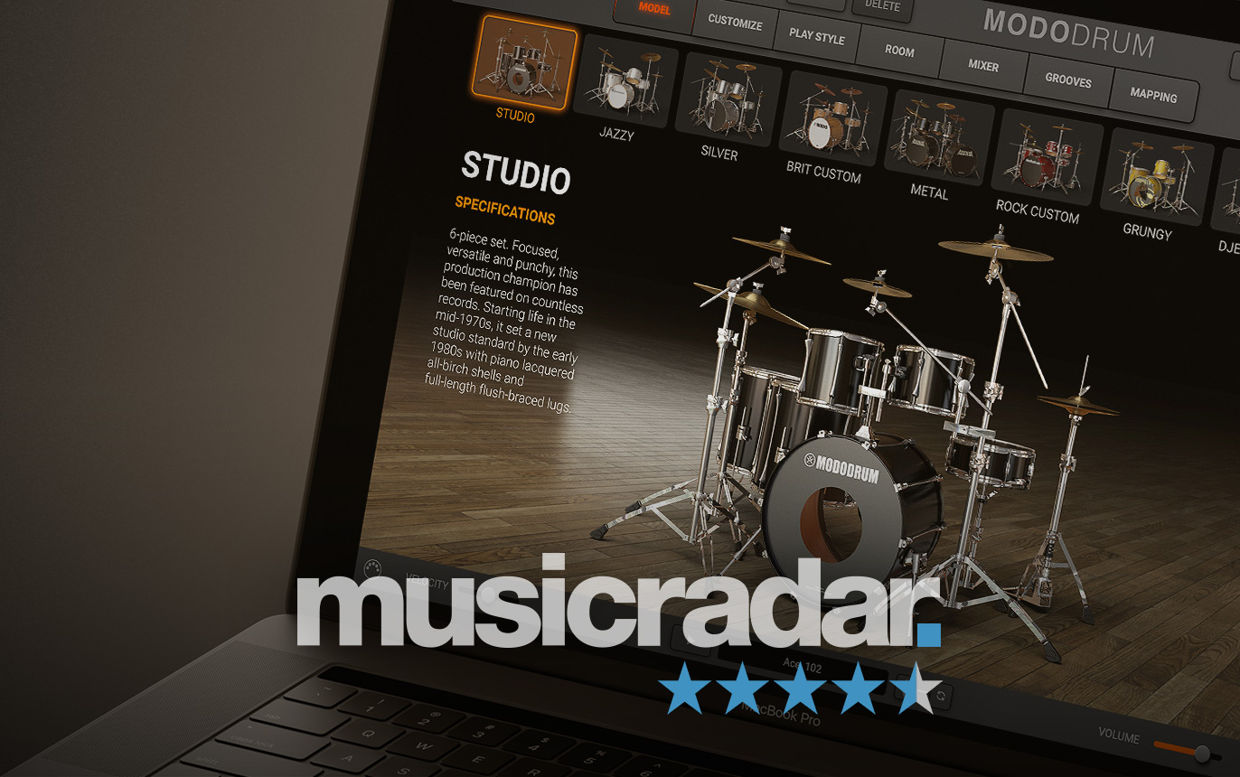 "With some of the most expansive tone-shaping control we’ve ever handled, IK has augmented an already unparalleled drum workstation." And so begins MusicRadar's recent review of MODO DRUM 1.5 giving the virtual drum instrument 4.5 out of 5 stars.