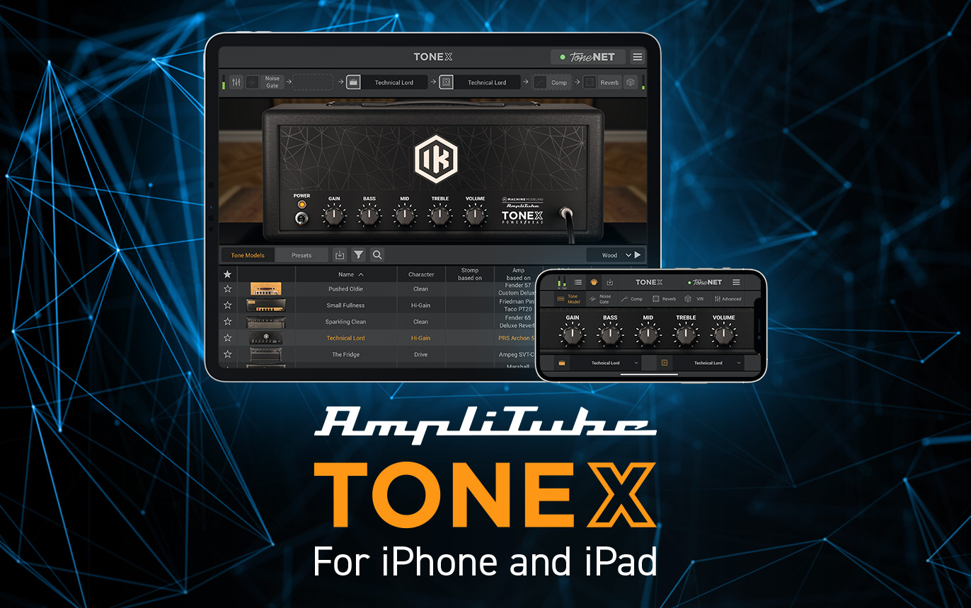 IK Multimedia releases AmpliTube TONEX® for iPhone and iPad, inviting users to experience the power of AI Machine Modeling Tone Models on their mobile device. The TONEX app works both as a standalone app or as an AU plug-in for all the major mobile DAWs and includes the exact same Player section as TONEX Mac/PC software to play, practice and record.