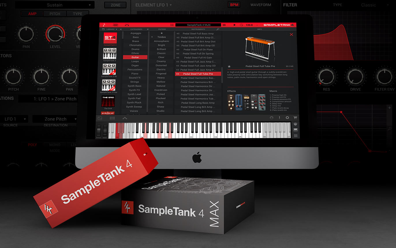 With this update, we're also bringing a new Sound Library Update 1.5 for all SampleTank 4 users. On top of all of that, we are even adding in a new Pedal Steel instrument for SampleTank 4 and SampleTank 4 MAX users.