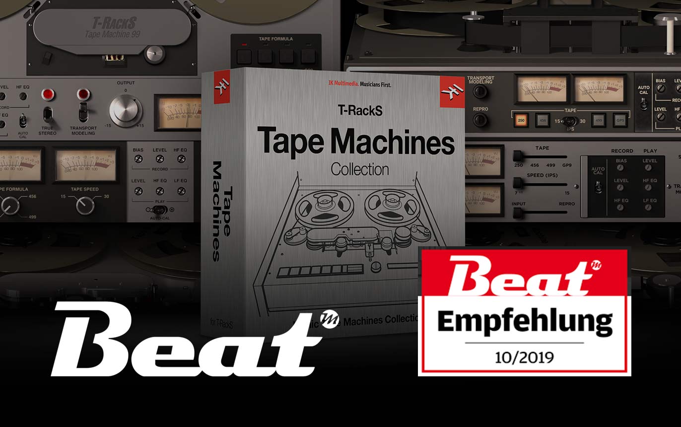 Beat's expert reviewer Kai Chonishvili has taken a thorough look at IK's new T-RackS Tape Machine Collection in their October 2019 issue and was very impressed by the results. So much that he decided to award it with their coveted 'Empfehlung/Highly recommended' award and the maximum score 6/6.