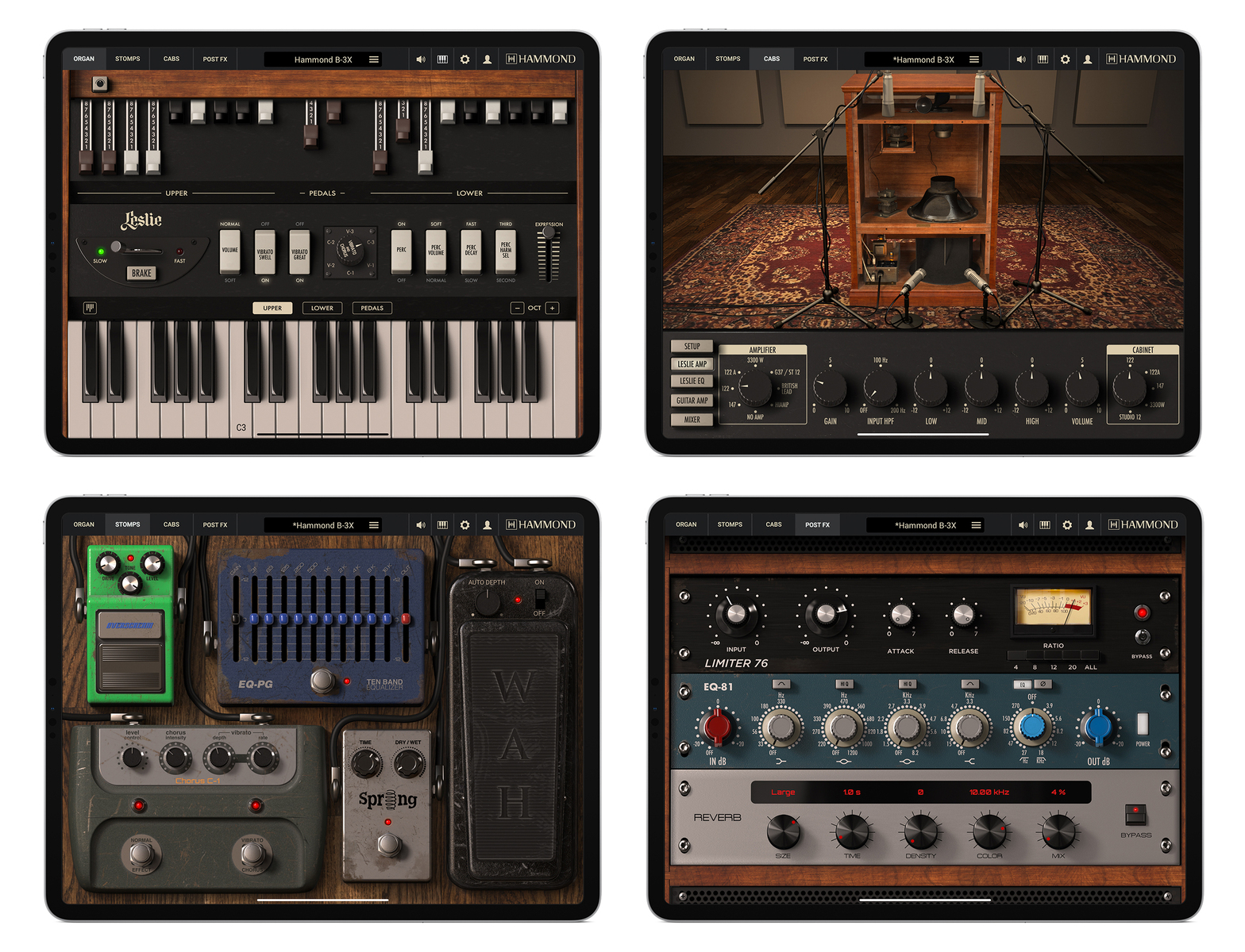 Finally, Hammond B-3X for iPad offers three rackmount studio effects derived from IK’s T-RackS Mixing and Mastering Workstation to add a final, professional touch.