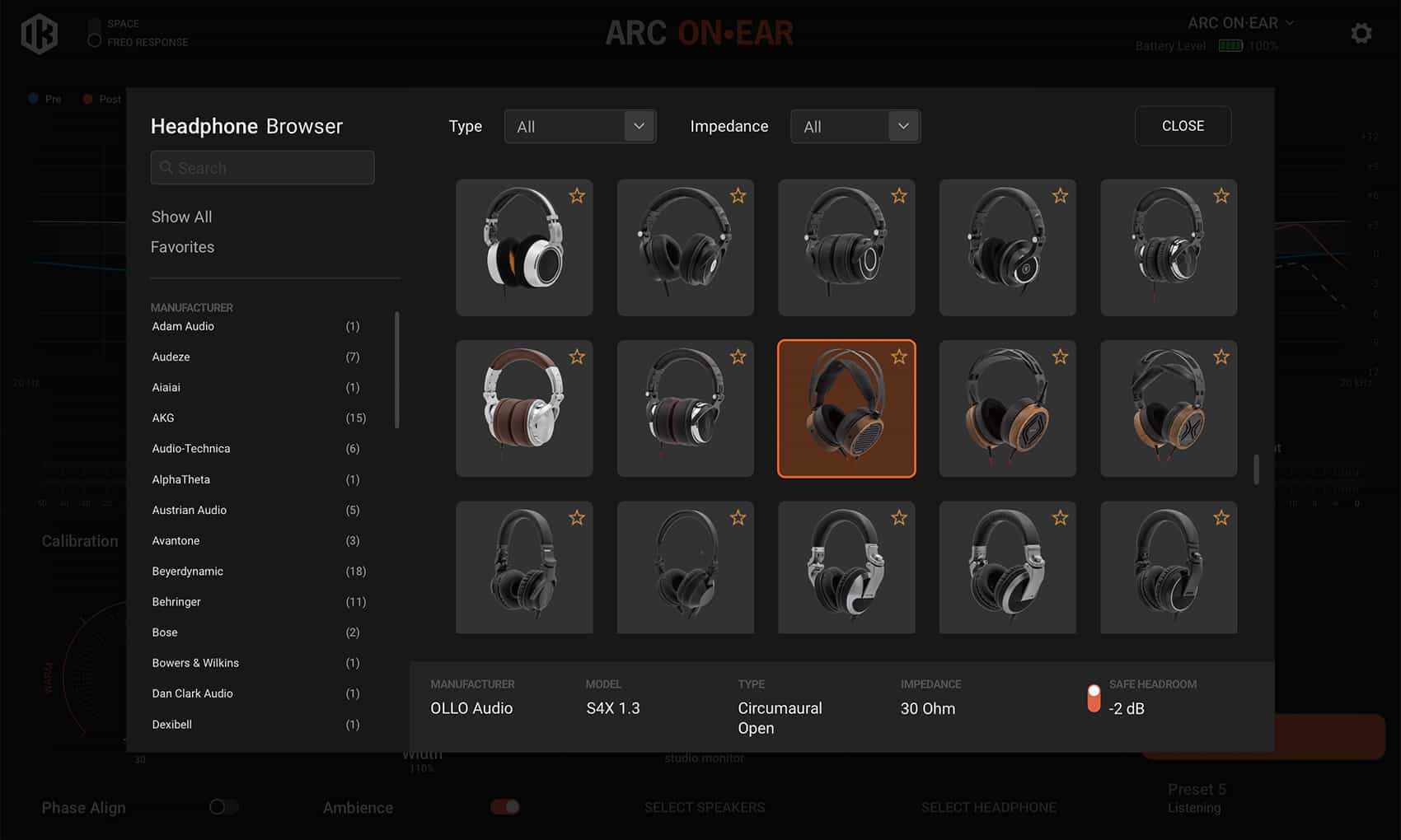 Open the ARC ON•EAR software, choose your headphone model, and customize the listening experience and presets to suit your workflow.