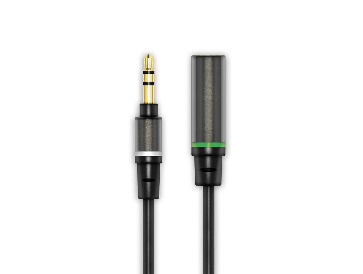 1/8" (3.5mm) TRRS female to 1/8" (3.5mm) TRS male.