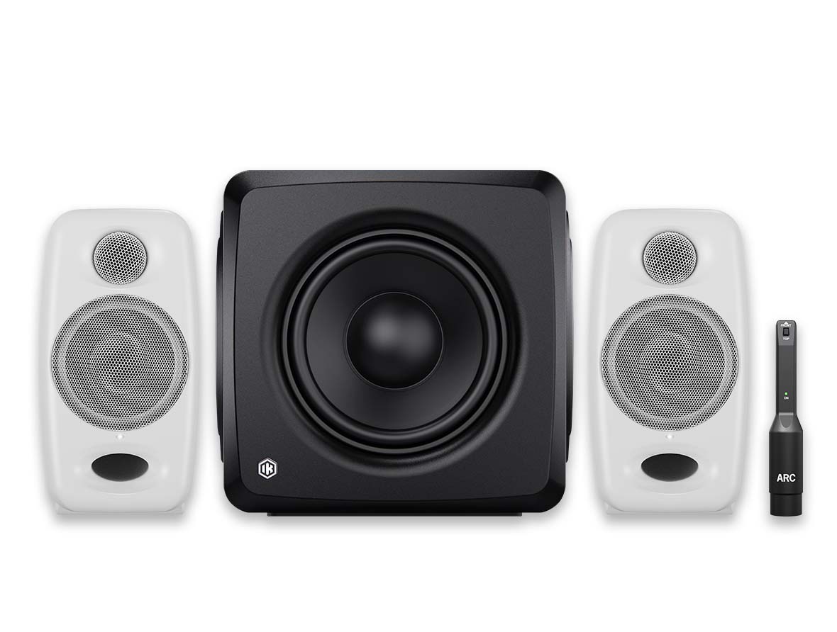 Includes 2 iLoud Micro Monitor Pro White, iLoud Sub, 1 ARC mic.