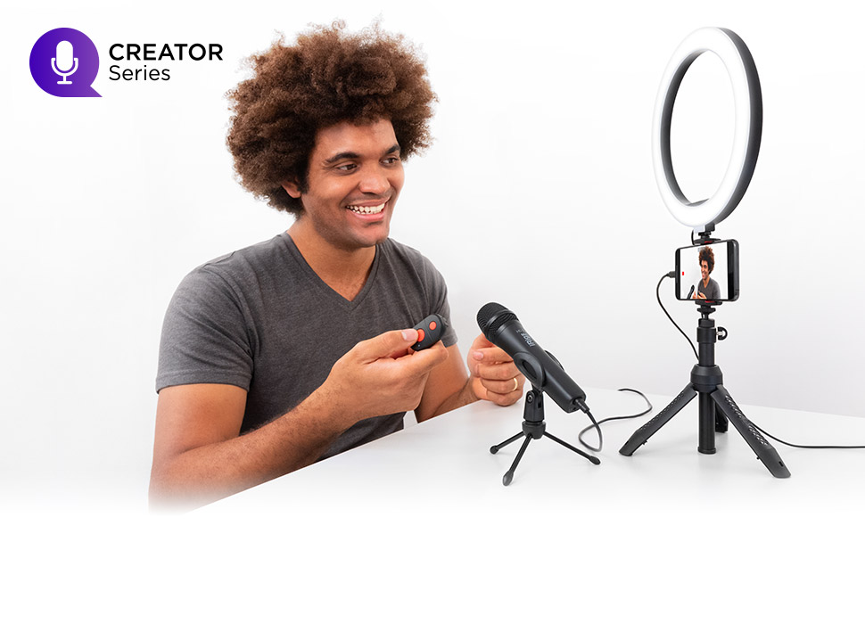 Its convenient handheld design is great for interviews or location work, and includes a tabletop tripod for hands-free, desktop use.