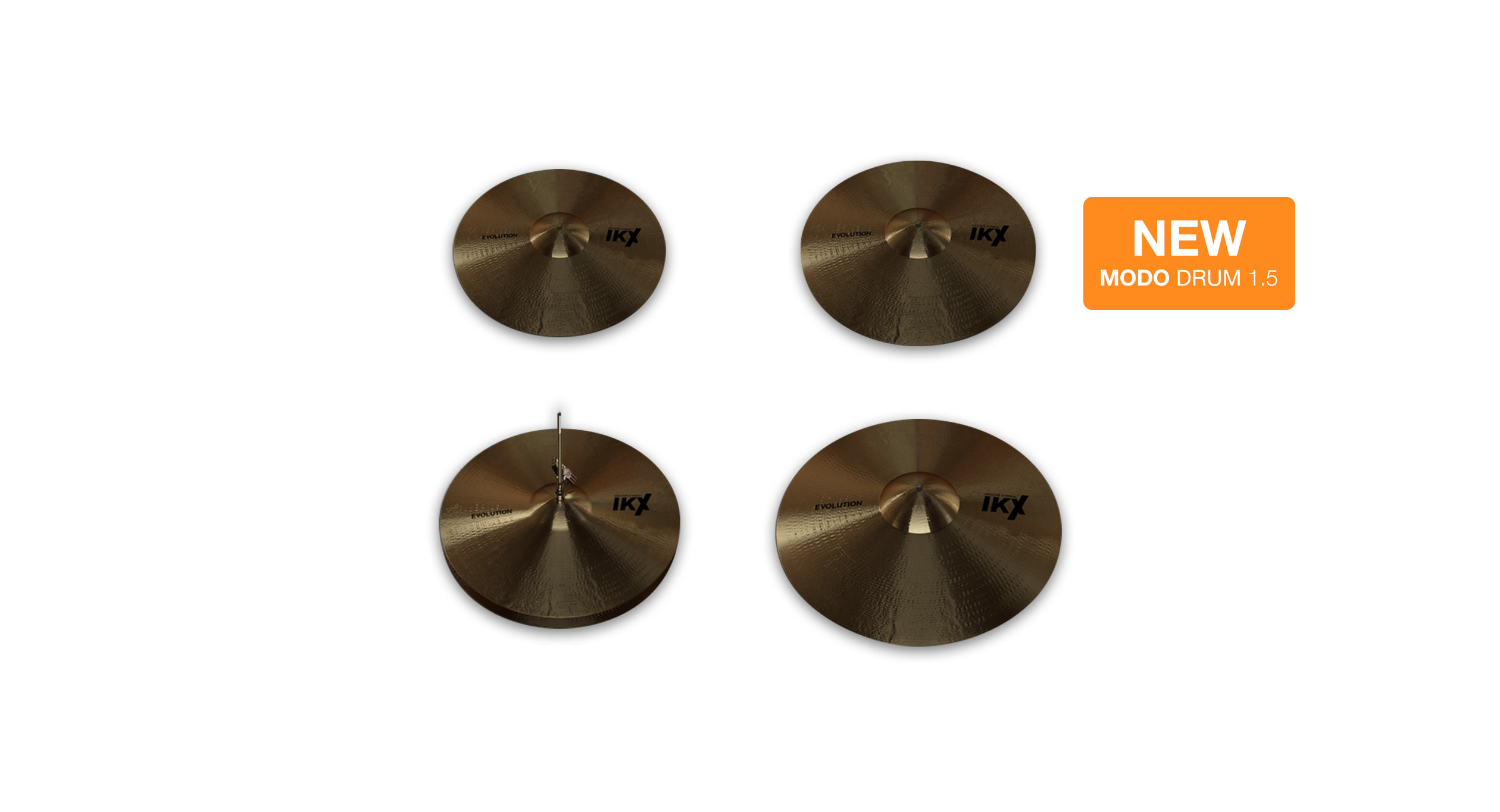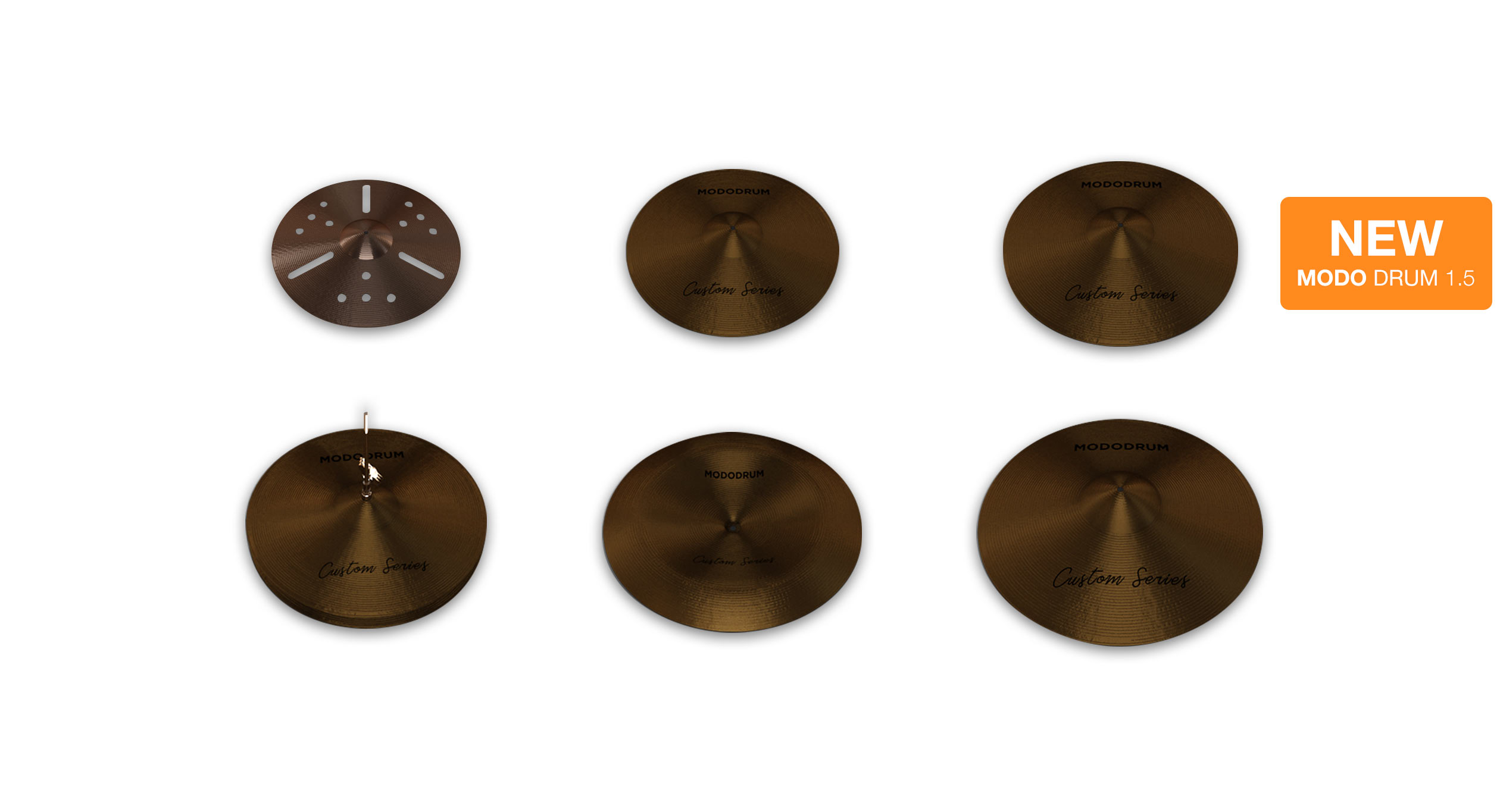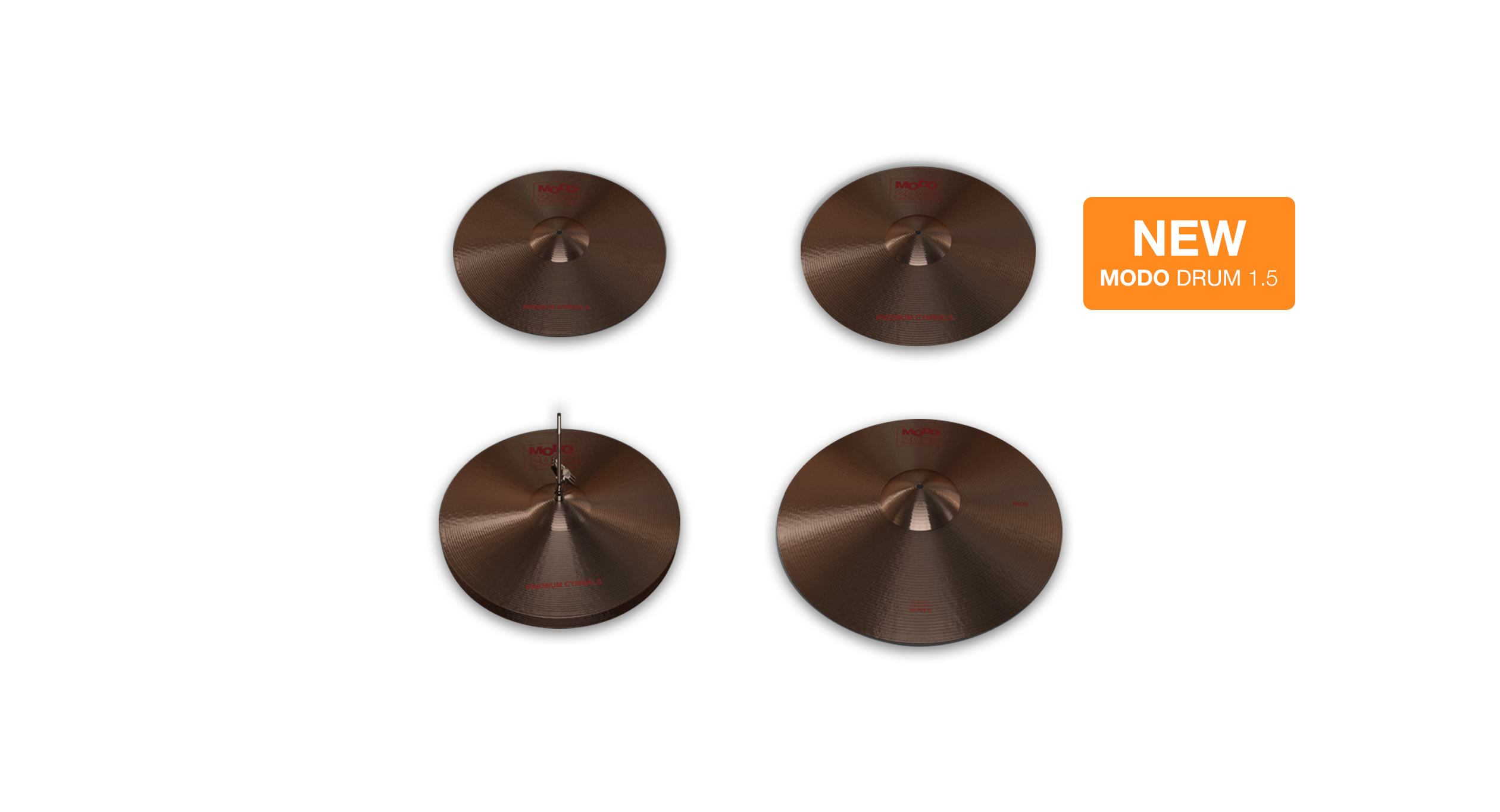 In addition to these 13 drum kits, MODO DRUM 1.5 offers 6 different cymbal sets: