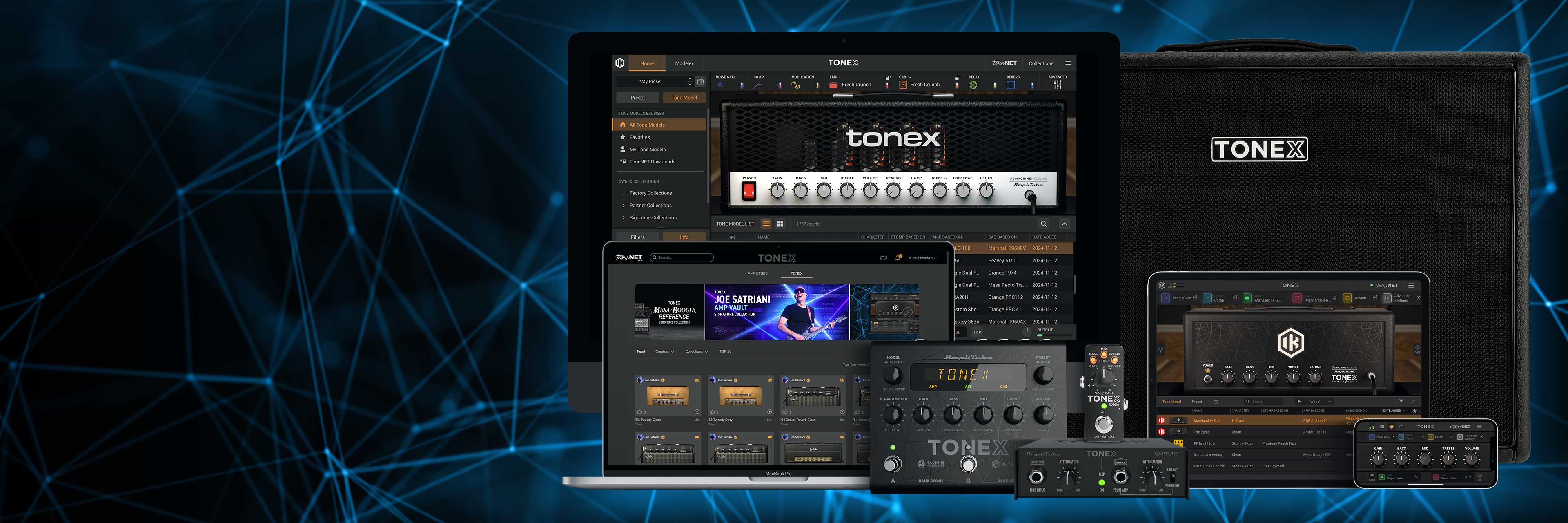 TONEX is a complete ecosystem based on a powerful new AI Machine Modeling™ technology that lets you experience thousands of ultra-realistic Tone Models of amps and pedals today with the promise of unlimited new tones to come. Using our most advanced modeling ever, every Tone Model created is virtually indistinguishable from the real gear.