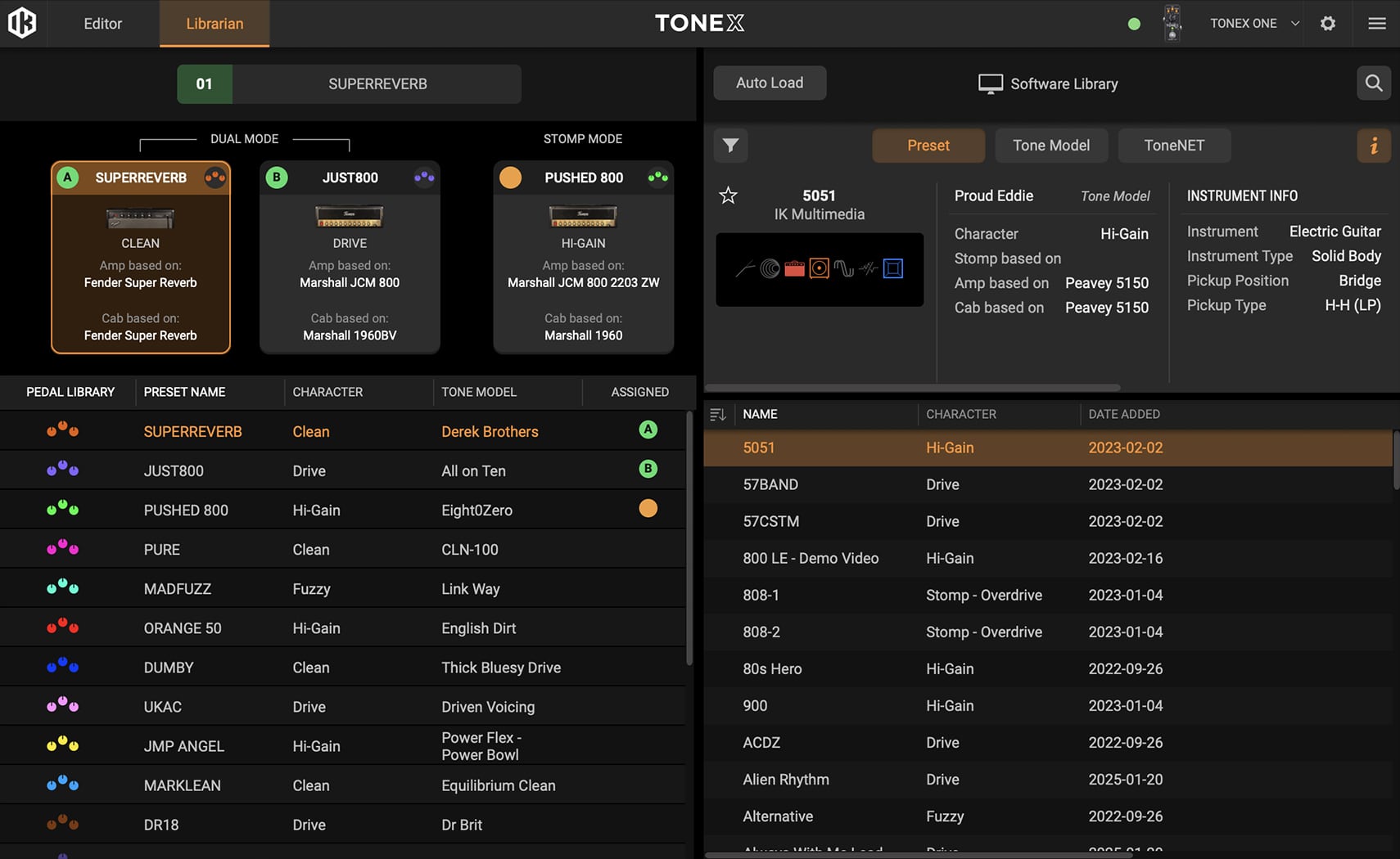 The Editor View allows you to access and edit any onboard Tone Model or preset, hearing your changes instantly through the pedal. You can save these adjustments directly to the pedal, including global setup and performance modes (TONEX ONE), making it easy to fine-tune and customize your sound. The free editor features a new floating window design for better screen organization, enabling seamless browsing of Tone Models, amps, cabs, custom IRs and VIR.