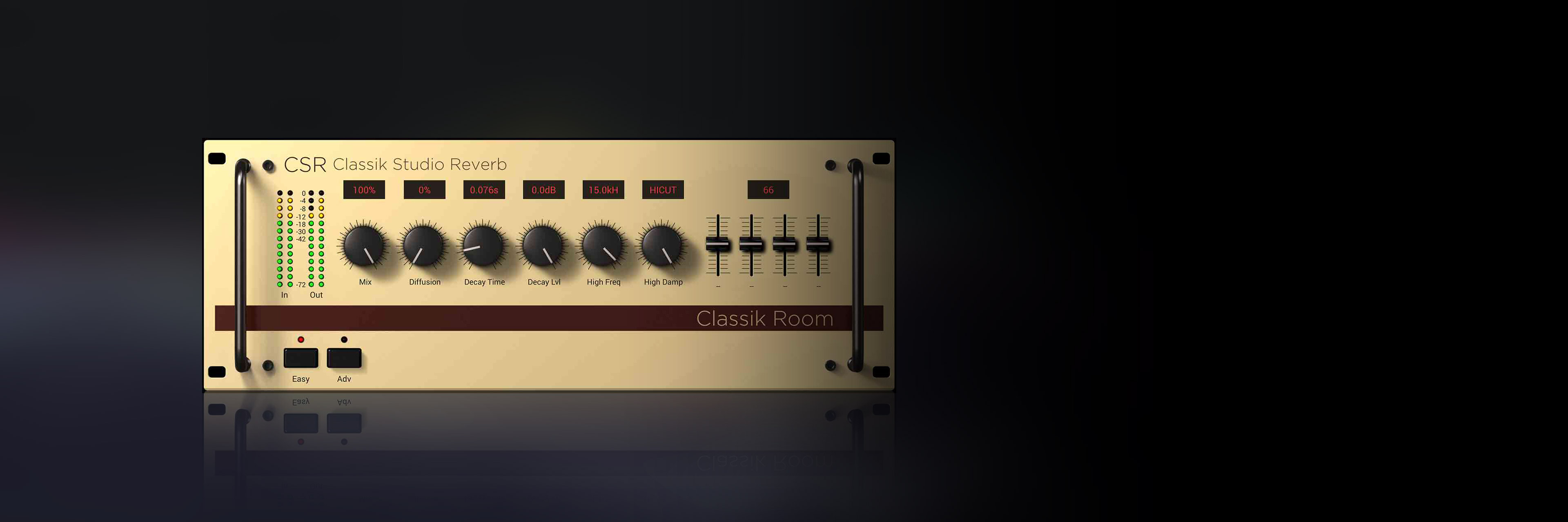 In a mix situation the CSR Room reverb will make tracks fit better because of the natural “air” surrounding them or, when driven harder, place them on a different sonic plane, making them literally jump out of the mix.