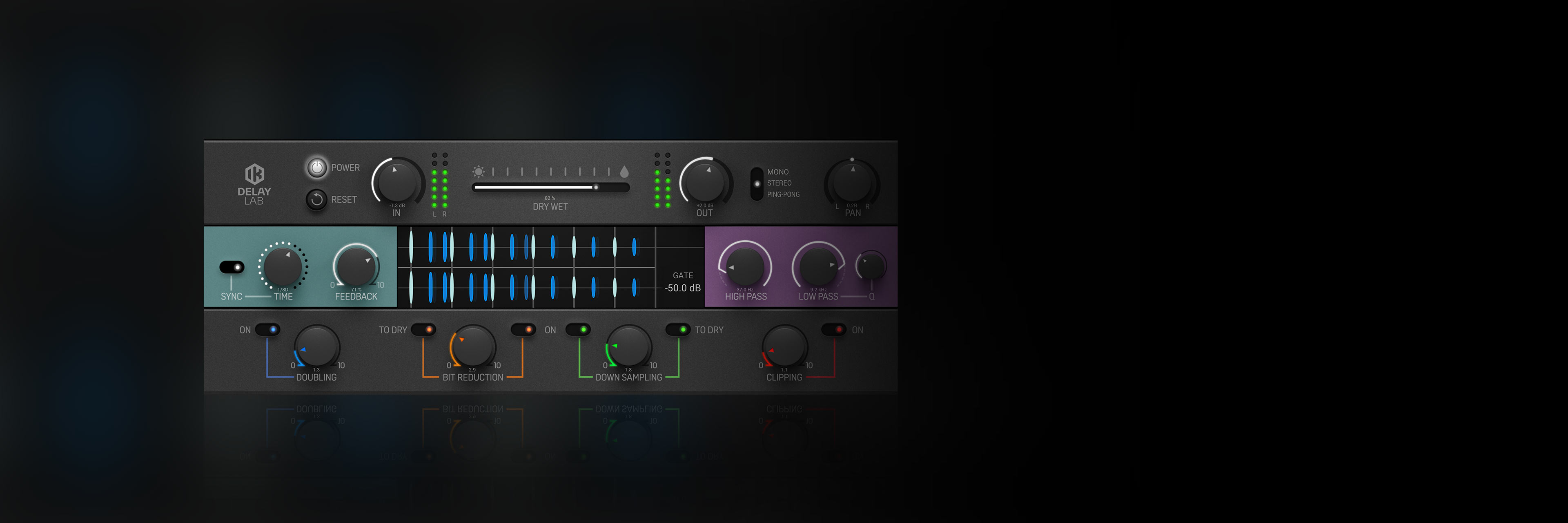 • Time: Define the exact delay interval with ease from musical bar divisions to milliseconds with BPM sync.