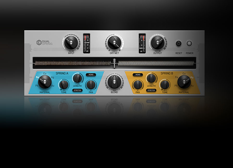 • Material Selection: Choose from a range of spring materials from mellow to bright, including Lead, Iron, Copper, Silver and Gold, each with a unique sonic character.